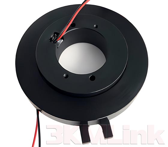 3KM T-series slip ring is designed with a through hole for shaft mounting, the through hole sizes are from 12.7mm to 124.6mm. it could be applied to transmit power, signals, RF, gas and fluid when the devices require 360° rotating.